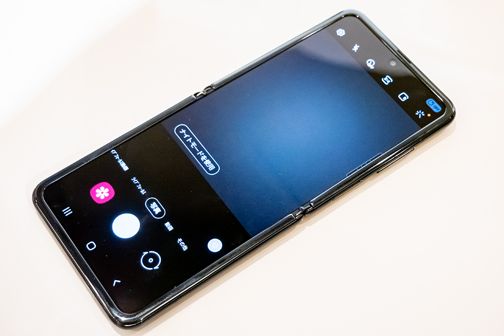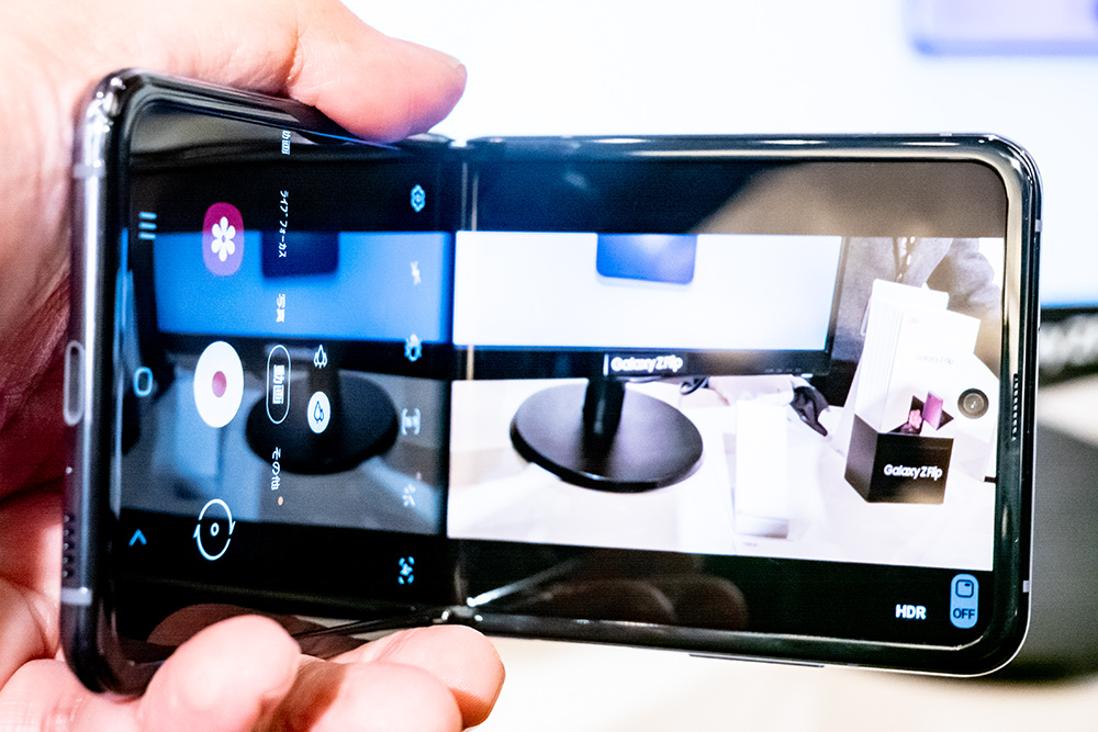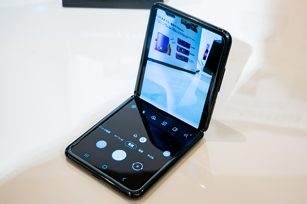 また折り畳める構造はコンパクトなサイズになるだけではなく、カメラや動画再生、ビデオ通話など一部のアプリで上下画面分割表示に対応する。