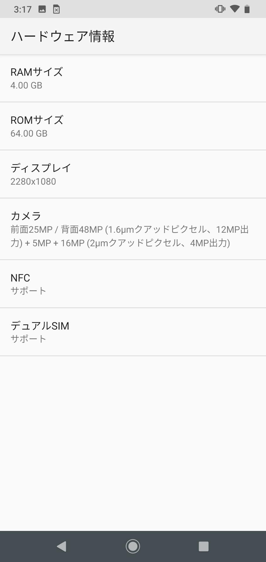 ノッチ部分にフロントカメラは約2500万画素CMOS(1画素0.9μm)/広角レンズ(F2.0)を搭載し、フロントカメラもクアッドピクセルテクノロジーによって1画素1.8μmの約625万画素相当で撮影することでより明るいセルフィーができるとのこと。本体カラーはお借りしたポイズンベリーのほか、コズミックブルーの2色展開です。