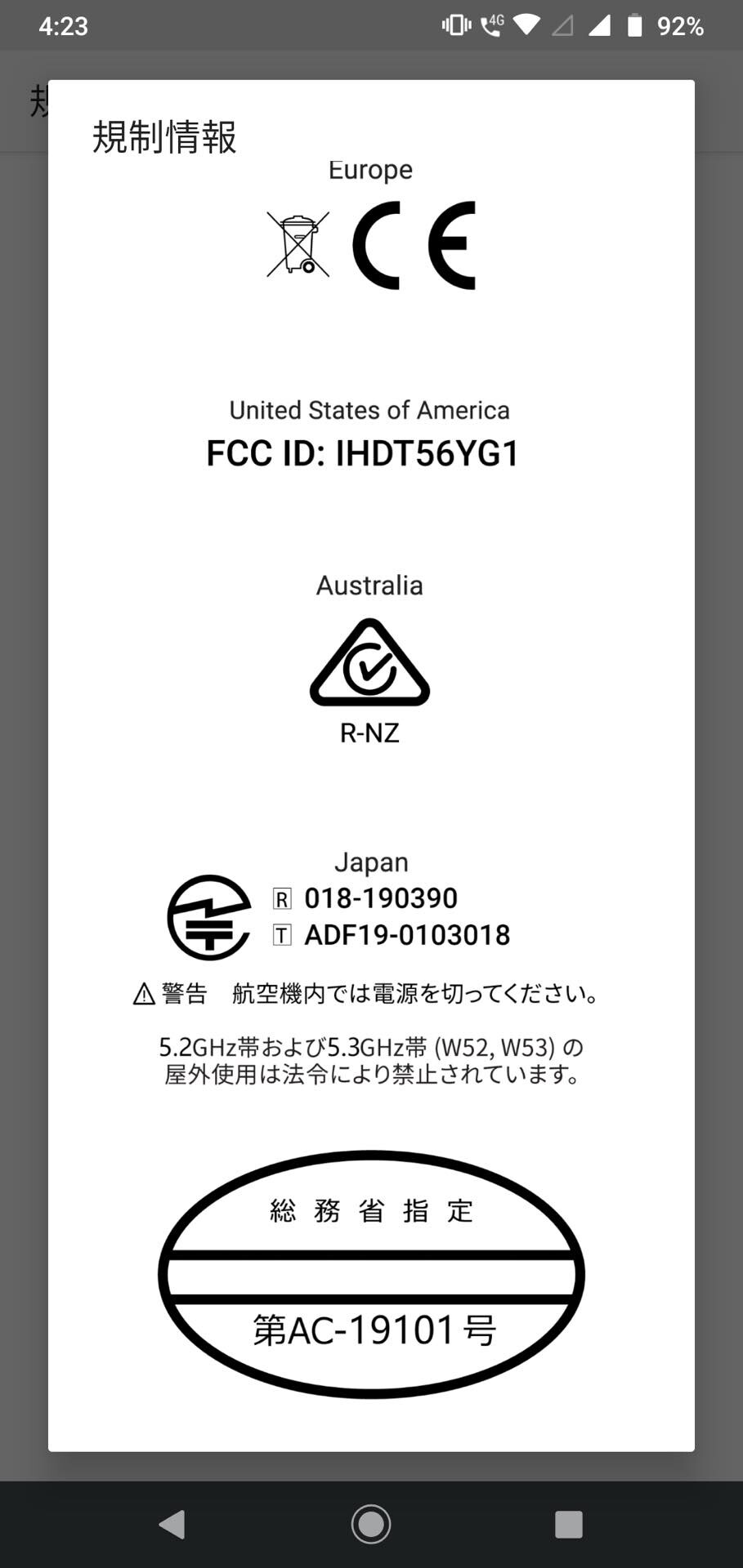 その他、IEEE802.11a/b/g/n/ac準拠(2.4および5.xGHz)の無線LAN(Wi-Fi)やBluetooth 5.0、FMラジオ、NFC Type A/B、加速度センサー、ジャイロセンサー、電子コンパス、近接センサー、環境照度センサー、マイク×2、Dolby Audioなど。OSはAndroid 9.0(開発コード名:Pie)をプリインストール。