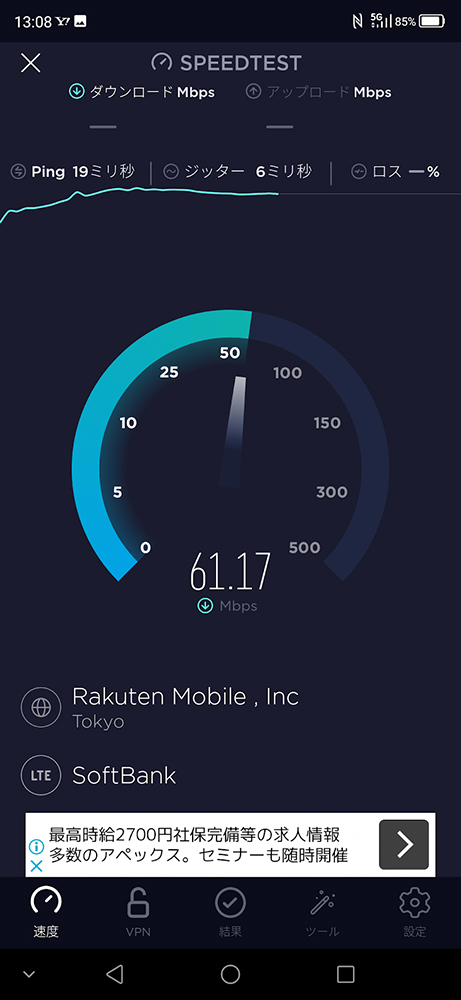 アンテナピクトには5Gの表示はでるものの、実測ではLTEと変わらない速度しかでないなど電波を掴むことに苦戦した。なお、5Gで接続された場合はおおよそ100~200Mbps以上出るとのことだ。