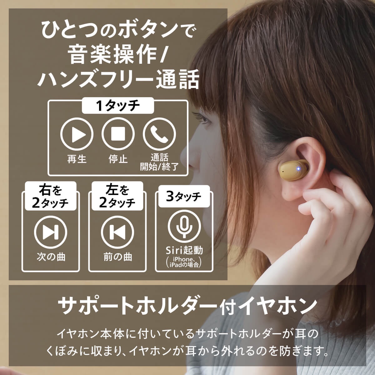 イヤホン本体にはタッチセンサーを搭載し、再生・停止は1タッチ、次の曲へは右のボタンを2タッチ、前の曲へは左のボタンを2タッチというように音楽・通話の操作を行えます。またノイズキャンセリング機能(高性能CVC8.0ノイズリダクション技術)によって遮音性が高くクリアな通話を実現。