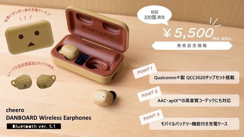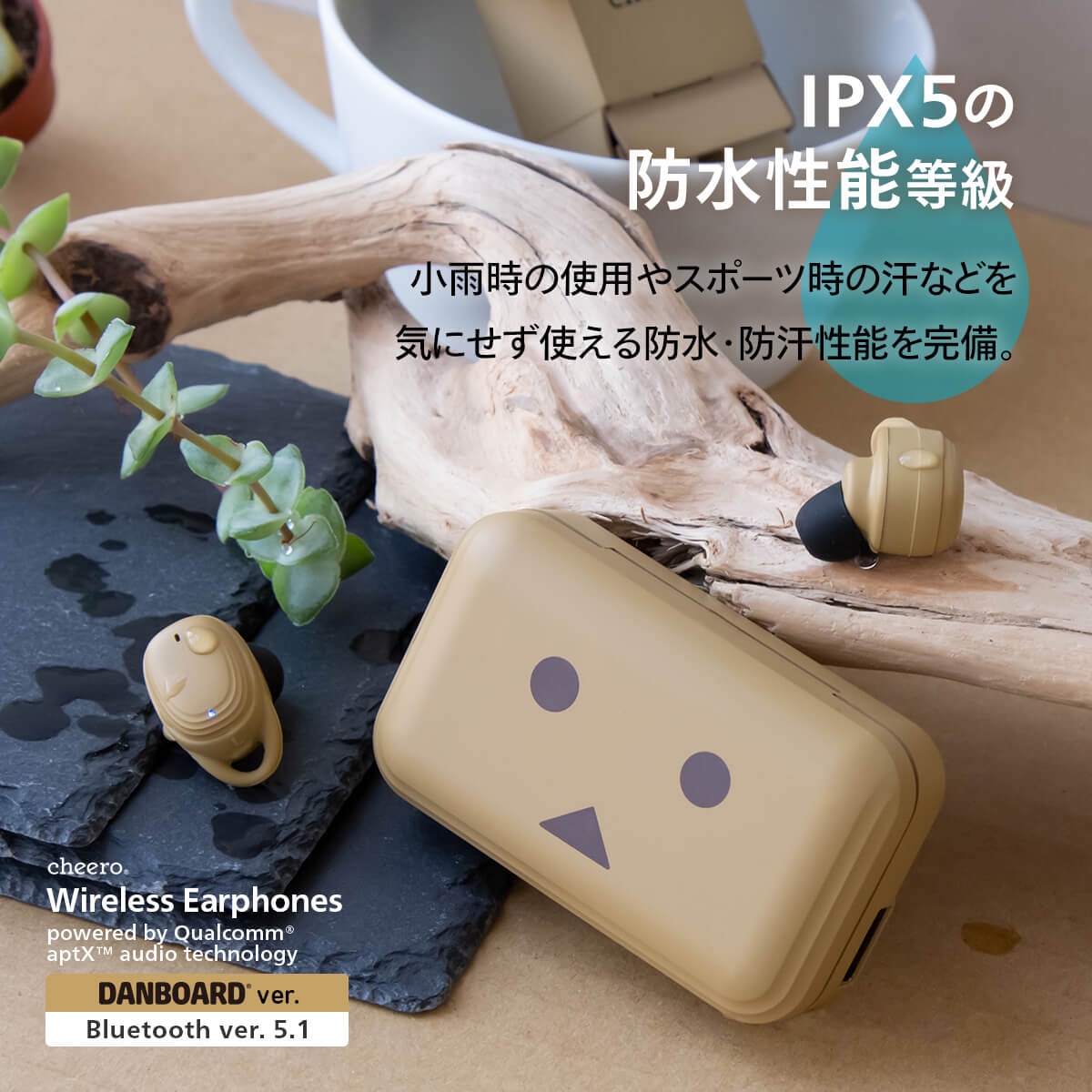 cheero DANBOARD Wireless Earphones Bluetooth 5.1は左右が分離した完全ワイヤレスイヤホンで、Qualcomm製チップセット「QCC3020」を搭載し、コーデックにはSBCに加えてAACおよびaptXに対応し、最大約10時間の連続再生が可能です。