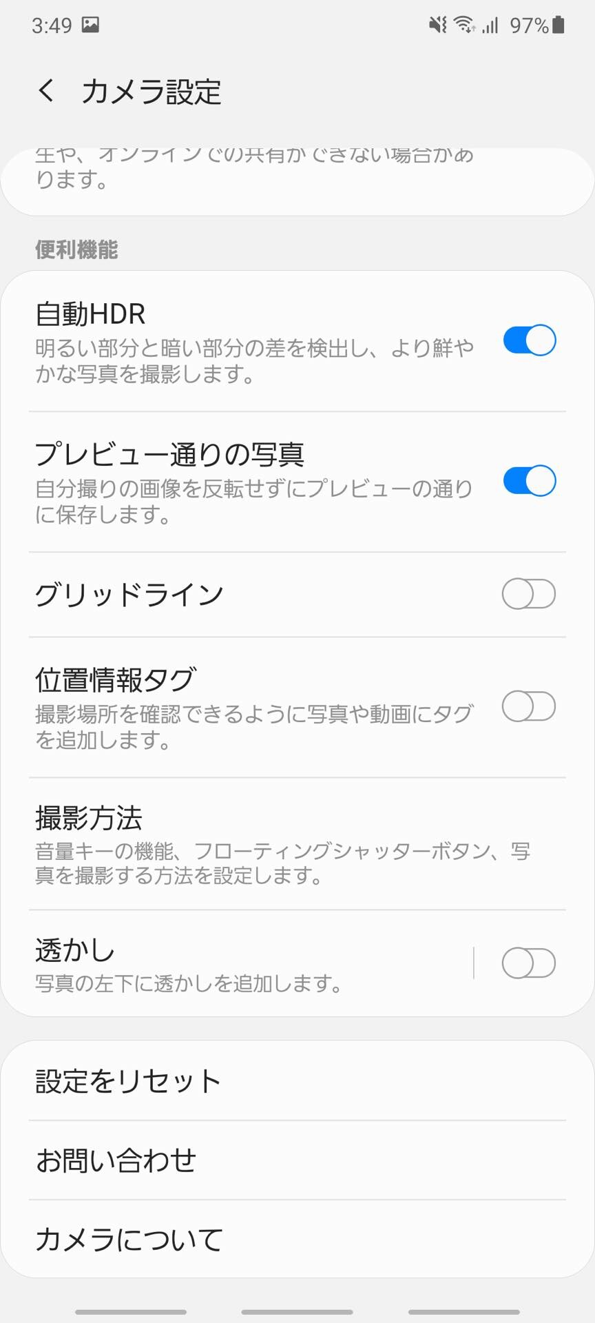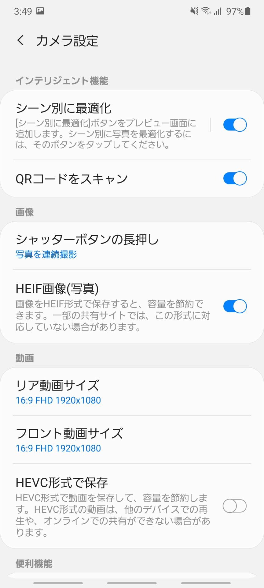 深度測位カメラを搭載していることで、撮影前でも撮影後でも被写界深度を調節できる「ライブフォーカス」に対応。またGalaxyシリーズのハイエンドモデルと同様にHEIF(.heic)形式での写真撮影やHEVC(H.265)形式での動画撮影に対応しているほか、サードパーティー製カメラアプリによるRAW保存も可能です。