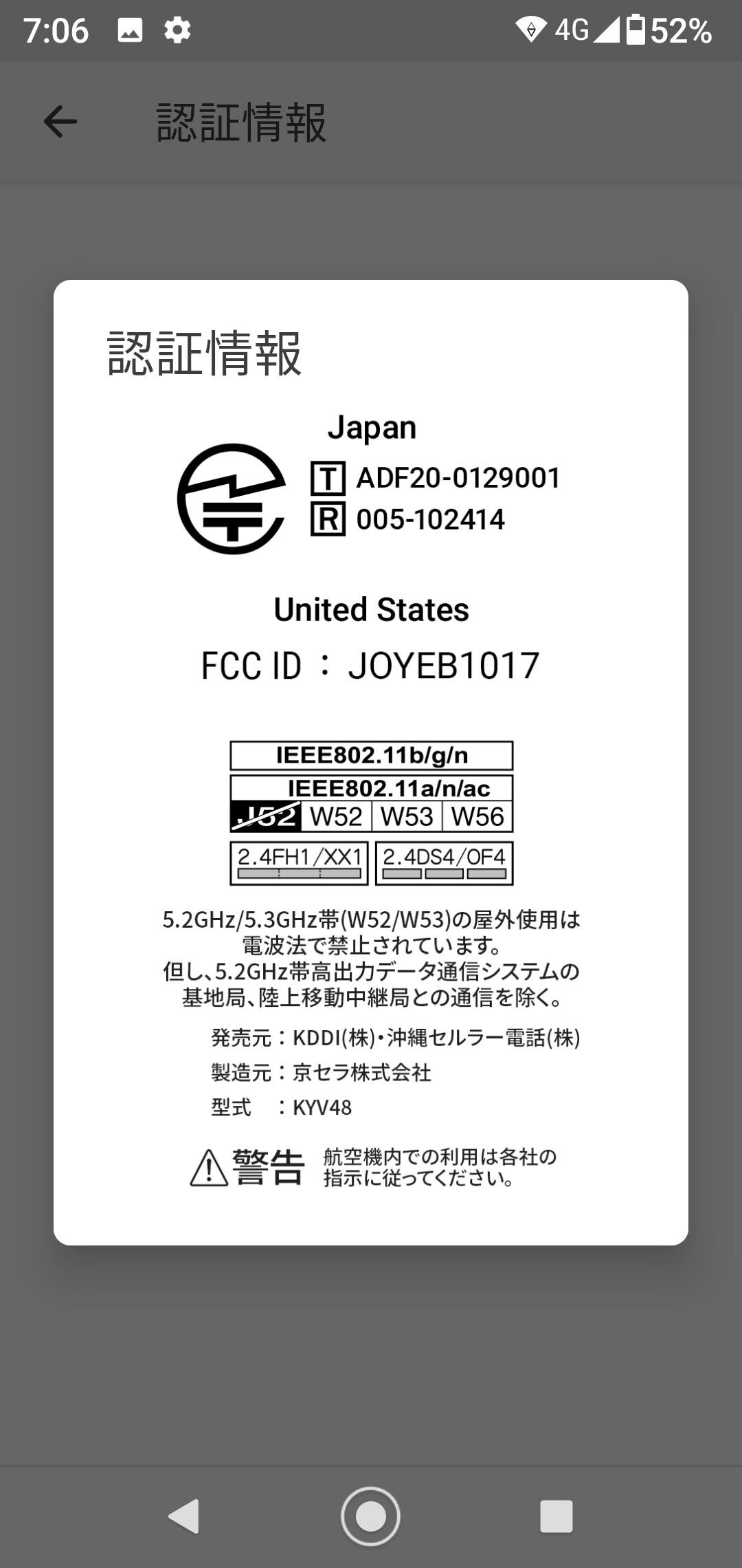 内蔵ストレージは初期状態でおよそ14.48GB使われており、残りが約17.5GB。日本向けの認証(いわゆる「技適」)は電気通信事業法に基づく技術基準適合認証(T)が「ADF20-0129001」、電波法に基づく技術基準適合証明/工事設計認証(R)が「005-102414」