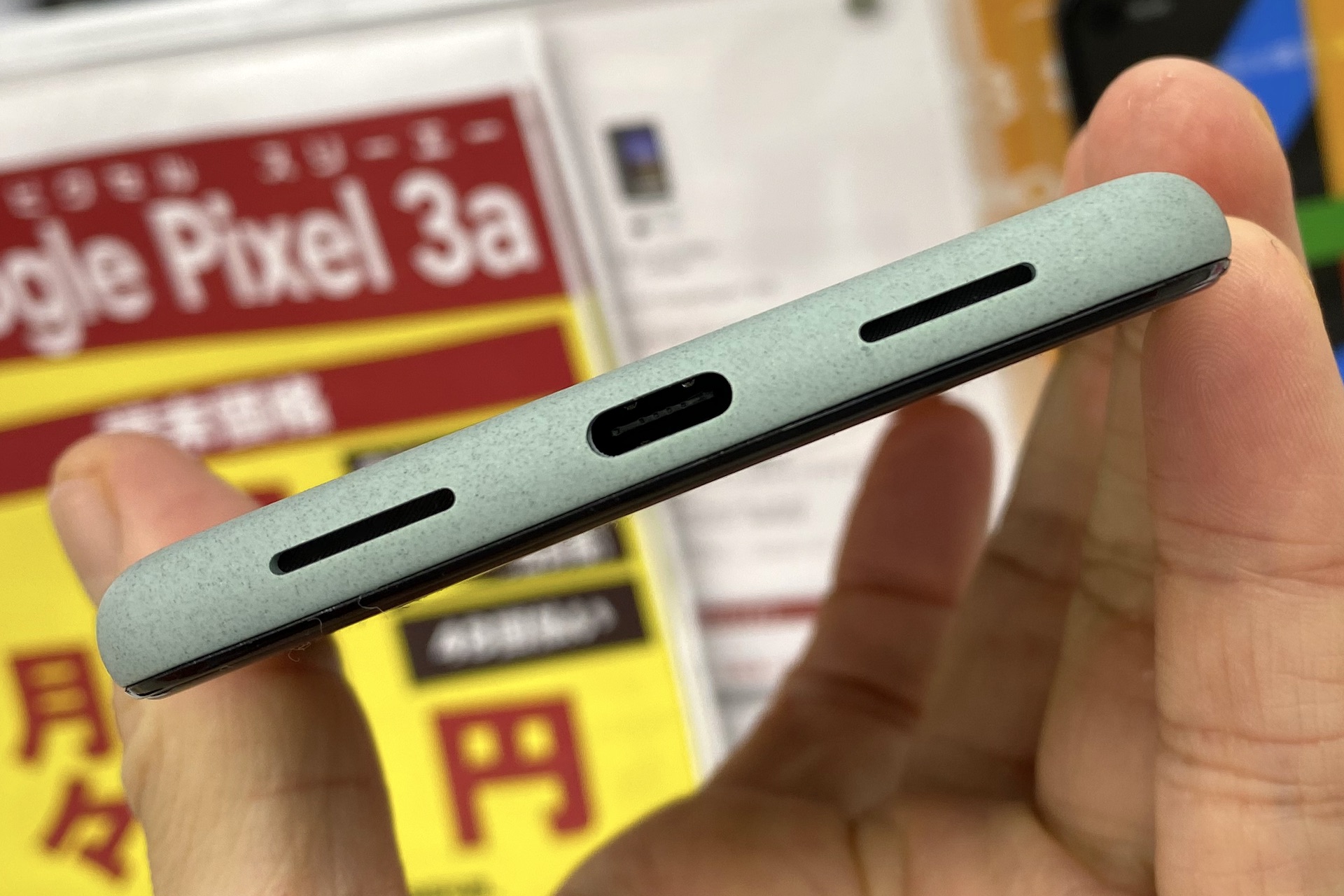 Pixel 5の下側面には外部ステレオスピーカーとUSB Type-C端子が配置。なお、Pixel 4aやPixel 4a (5G)には3.5mmイヤホンマイク端子があるものの、Pixel 5は非搭載