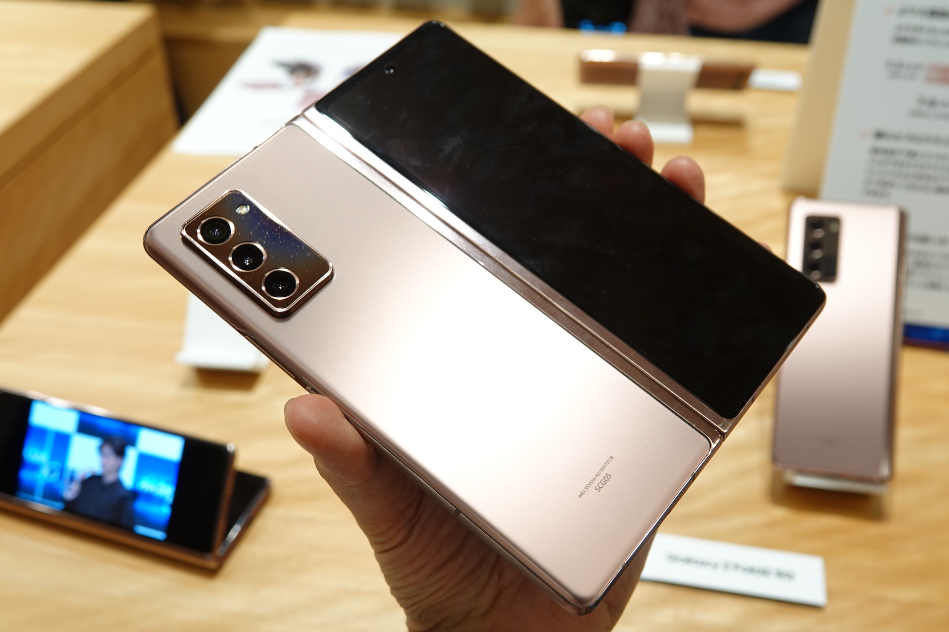 今回は発表会が行われた9月25日にコンセプトショップ「GINZA 456 created by KDDI」にて行われた内覧会および新製品タッチ&トライイベントでGalaxy Z Fold2 5G SCG05を試してきたので外観を中心に写真を交えて紹介していく。