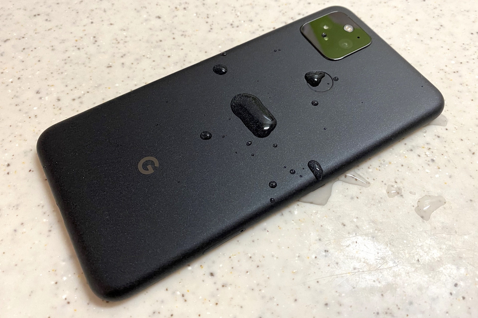 一方、Pixel 4a (5G)とPixel 4aはともにソフトタッチ ポリカーボネート製ユニボディーで、Pixel 5がザラザラしているのに対し、サラサラしています。また良く見ると、同じジャスト ブラックでもPixel 5は細かな模様があるのに対し、Pixel 4a (5G)とPixel 4aは均一となっています。また大きな違いとしてはPixel 5は防水・防塵(IP68)に対応していますが、Pixel 4a (5G)とPixel 4aは非対応です。