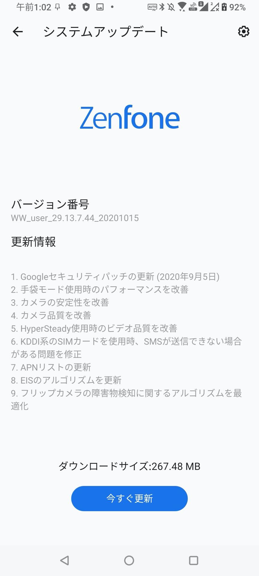すでに発売日に両機種ともにソフトウェア更新が提供開始されており、カメラ品質の改善やカメラの安定性の回線などのほか、auやauの仮想移動体通信事業者(MVNO)においてSMSが送信できない不具合などが解消されています。右側の画像の購入時のアプリ一覧