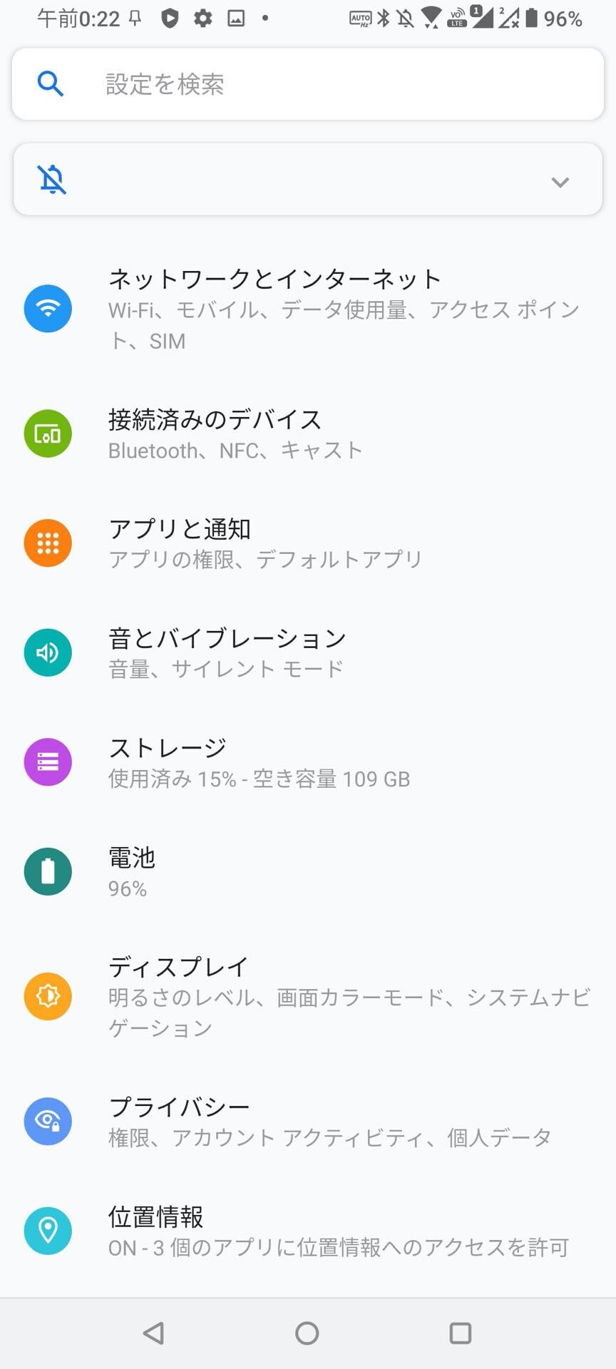 ZenFone 7およびZenFone 7 Proの設定画面。素のAndroidに近く、シンプルなユーザーインターフェース(UI)となっています。OSはAndroid 10をプリインストール。引き続いて日本語文字入力アプリ「ATOK for ZenFone」も搭載されています