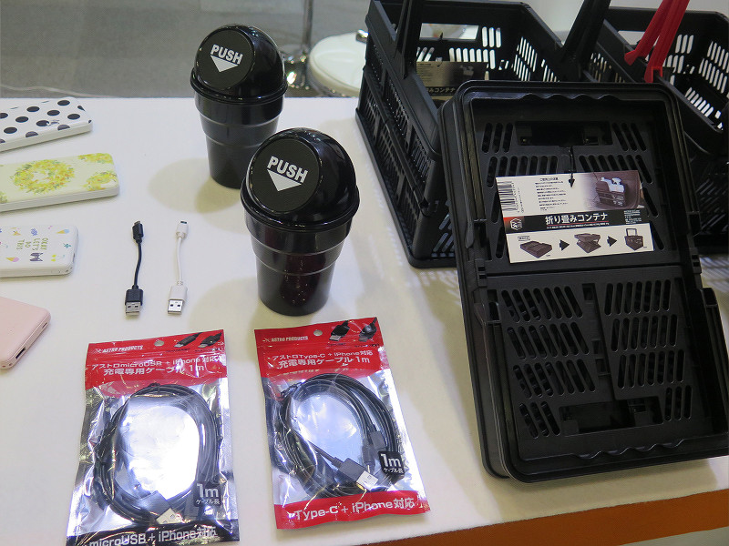 E CoreはOEM(他社ブランドの製品を代わりに製造する企業)メーカーとして活動している企業で、説明員によると主に安価なUSBケーブルやモバイルバッテリーなどをダイソーやキャンドゥといった100円均一ショップへ出荷しているそうです(もちろん100均ショップ以外にもあるとのこと)。