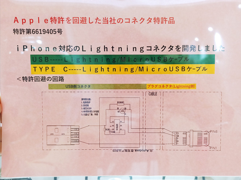 そこで、E CoreではAppleの特許とガイドラインに抵触しない設計でiPhoneへ充電可能なケーブルの特許を別に取得し、これに沿った回路設計のケーブルを生産して出荷しているということです。