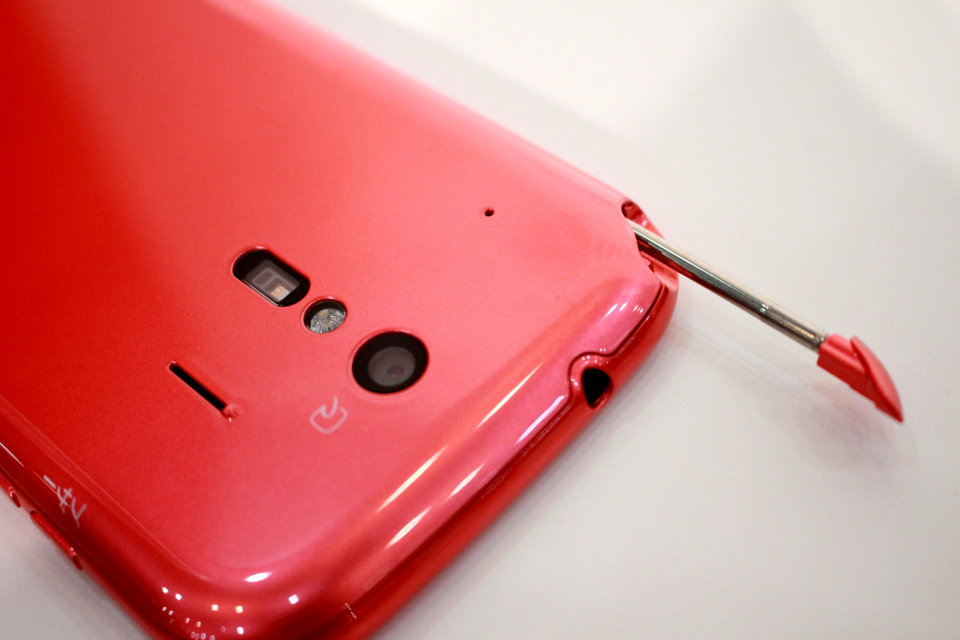 背面には有効画素数約1310万画素CMOS、F値1.9のリアカメラやおサイフケータイのマーク(アンテナ)を備え、FeliCaにも対応している。また背面向かって左上の角にはワンセグ受信用のロッドアンテナを搭載しており、簡単に手で引き出すことができる。