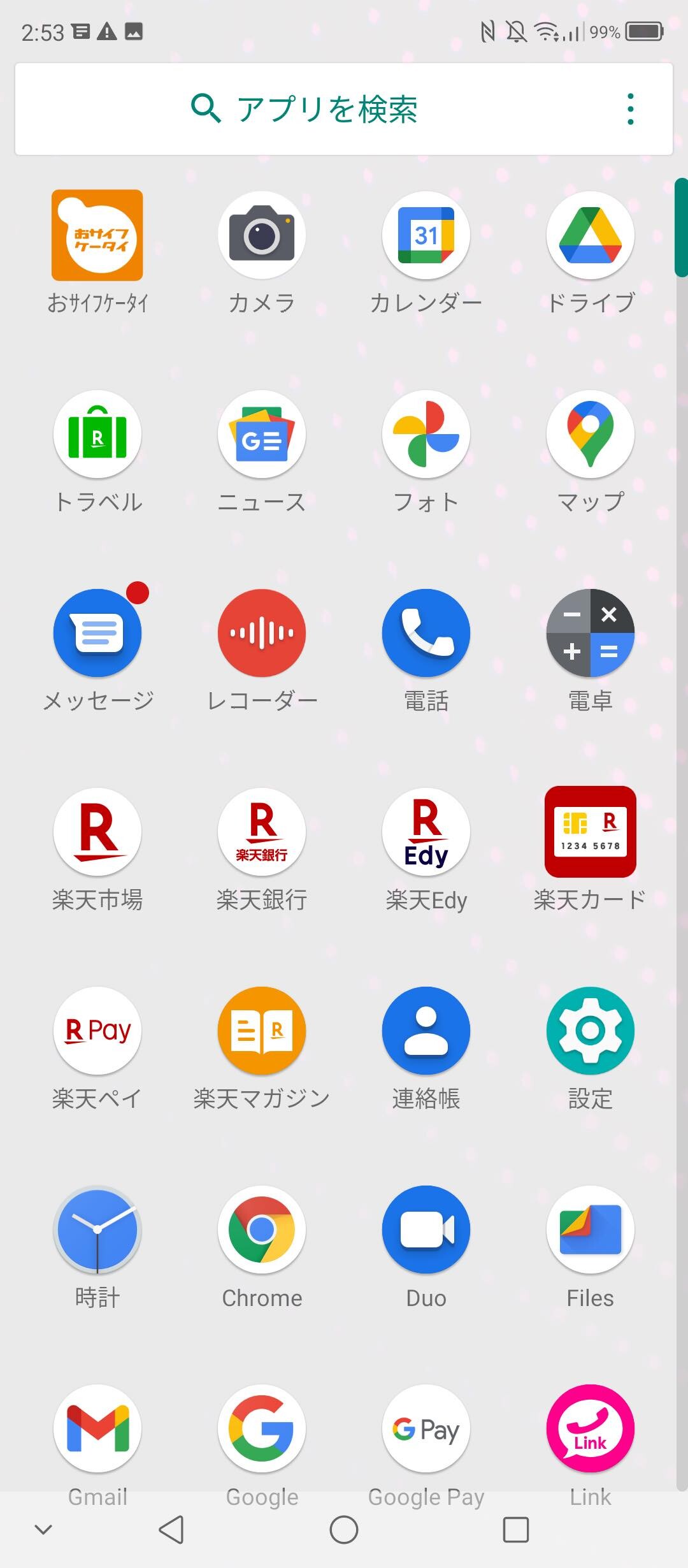 OSはAndroid 10がプリインストールされており、起動画面の他にプリインストールアプリも楽天の各種サービスが多くあります。ただし、楽天モバイルのmy 楽天モバイルやRakuten Linkなどの一部以外の楽天トラベルや楽天市場、楽天カード、楽天銀行、楽天Edy、楽天ペイ、楽天マガジン、Rakuten Music、Rakuten TVはアンインストールが可能となっていました。