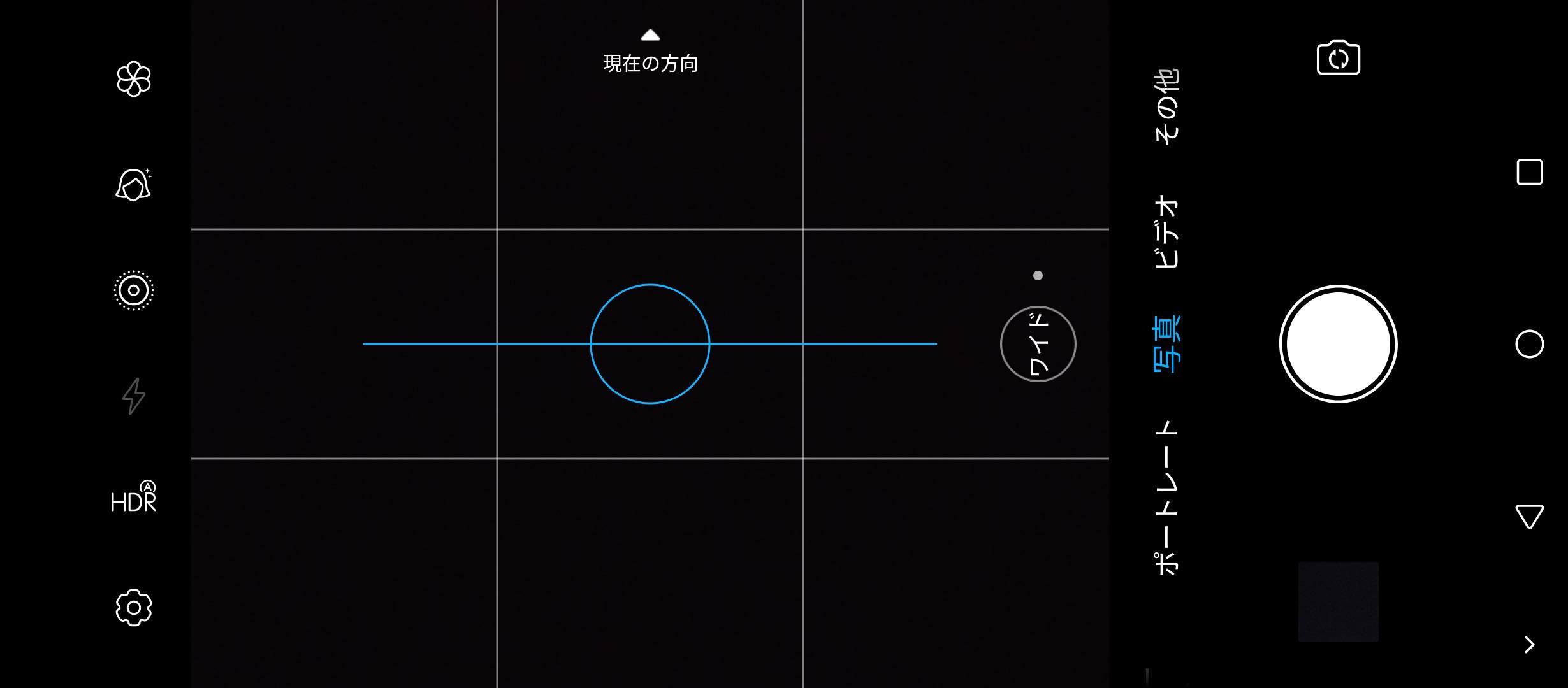 標準カメラアプリのファインダー画面。モードは「写真」の他に「動画」や「ポートレート」、「夜景」、「背景ぼかし」、「その他」があり、ポートレートと背景ぼかしが別れているのが珍しいところでしょうか。写真では広角カメラと超広角カメラをボタンで切り替えられるようになっています