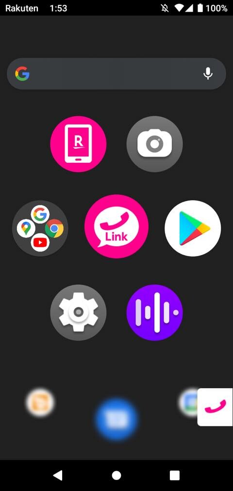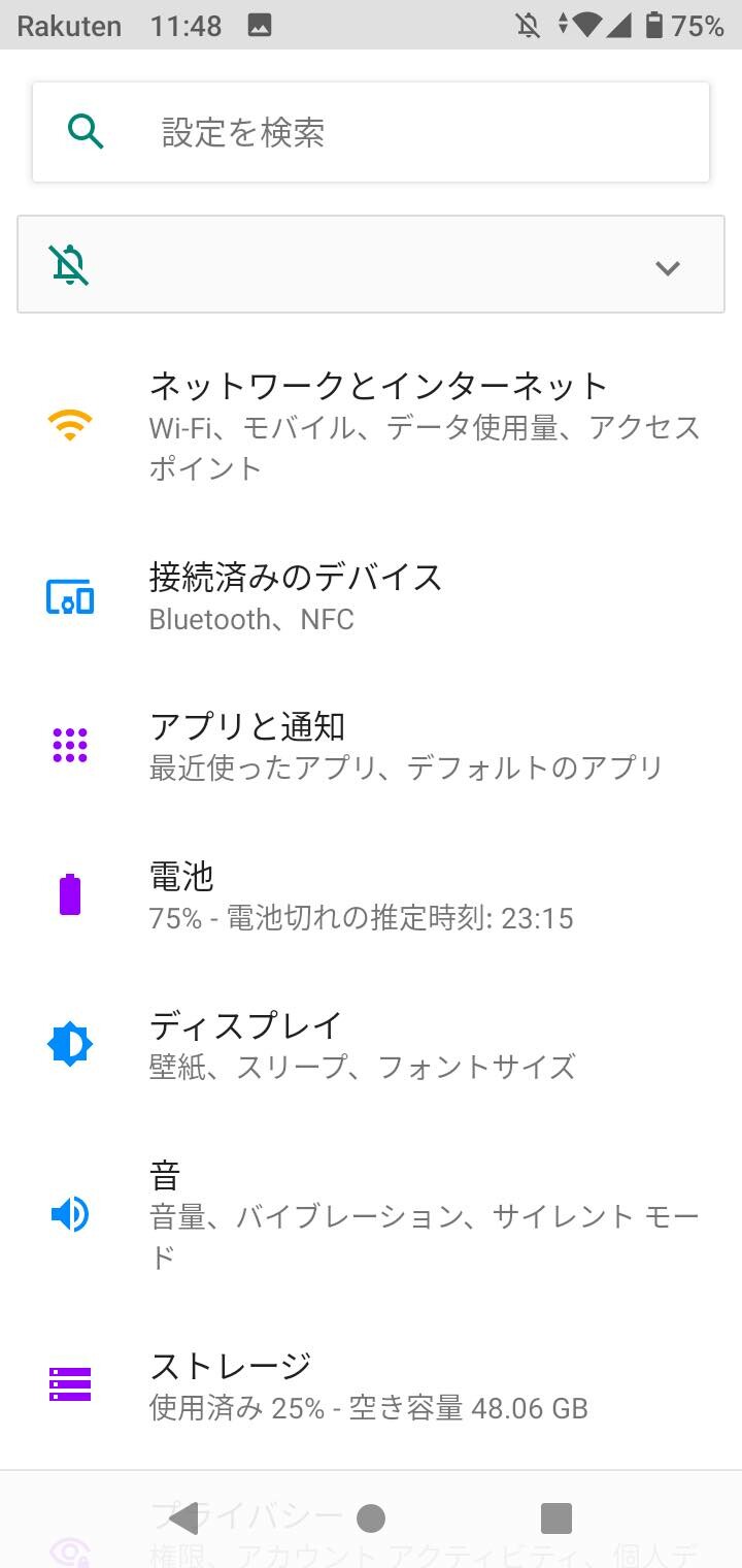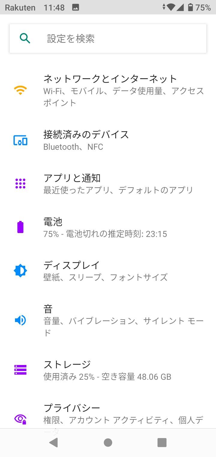 購入時にはデフォルトで「ランチャー」がホームアプリに設定されていますが、Rakuten Miniで採用されていたような「ランチャー(オリジナル)」(画像=左)も搭載されています。購入時の内蔵ストレージの空きは約48.87GB