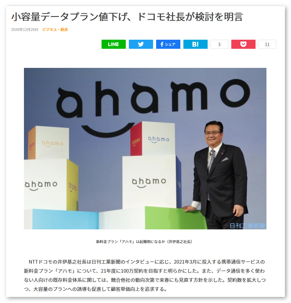 少なくとも、MNO各社の料金プラン合戦はまだまだこれからが本番です。NTTドコモのギガライト系の従量制低料金プランについても、「競合他社の動向次第で来春にも見直す方針」(日刊工業新聞)との報道が昨年末に滑り込みで入ってくるなど、その動きは非常に激しいものです。