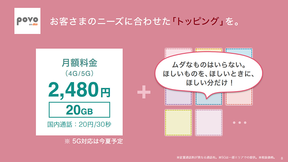 ■「トッピング」の概念が新鮮な新料金プラン「povo」