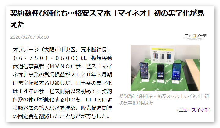 2014年にサービスを開始し、MVNOの中でも大手と言われ現在では120万超の契約数を誇る「mineo」でさえも、2020年3月期にようやく初の黒字化を達成したほどです。