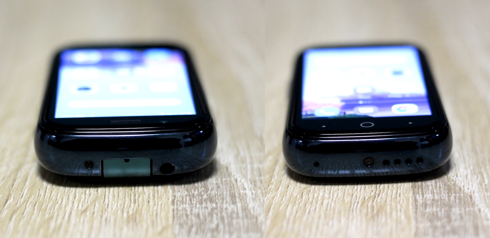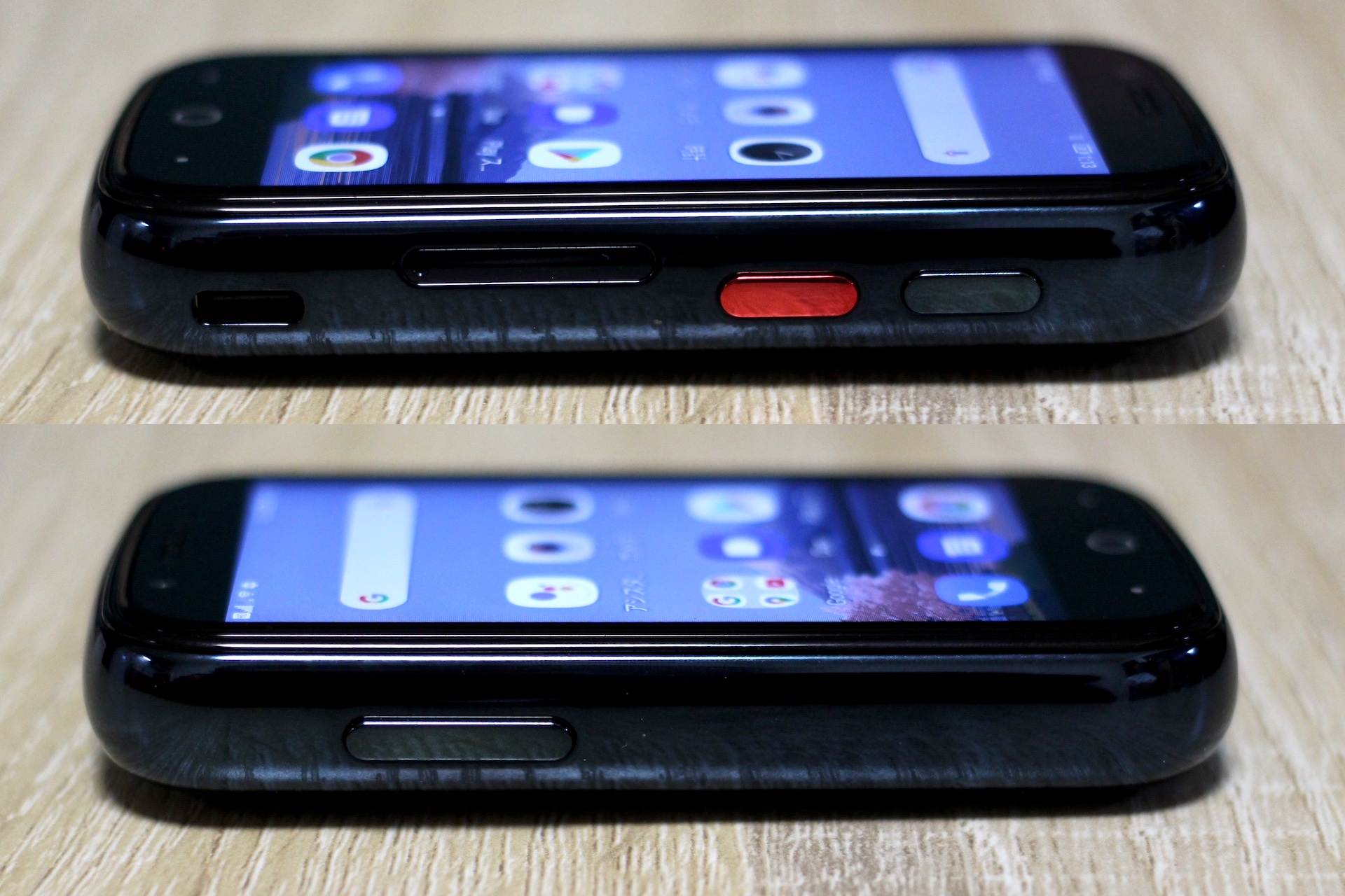 色はブラックの1色のみですが、真っ黒というよりも背面は微妙に青みがかった非常に濃い紺といった色合いとなっているのもなかなかおしゃれです。またUnihertzの特徴にもなってきている側面に搭載されたカスタマイズキーも赤いメタリック塗装がされており、アクセントとしていい味を出しています。