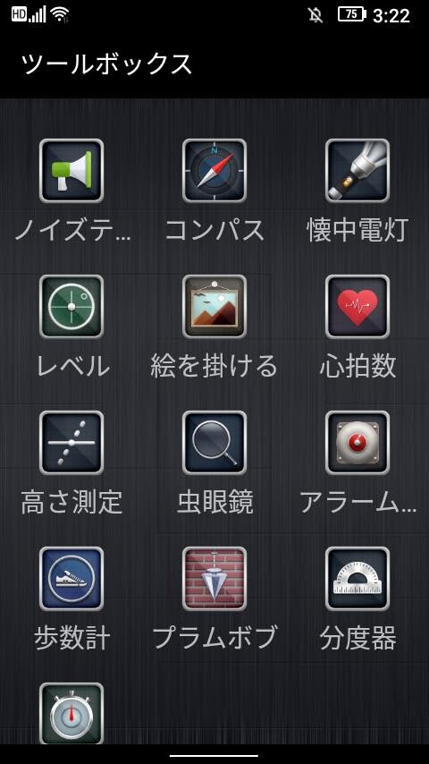 音声レコーダー(画像=左)と各種ツールアプリ(画像=右)。コンパスや歩数計、心拍計、分度器、懐中電灯などが利用可能。LEDフラッシュライトを付けっぱなしにする懐中電灯はカスタマイズキーキーのデフォルトで長押しで割り当てられています