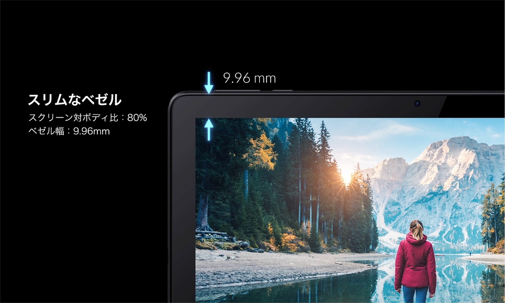 ディスプレイの周りの縁(ベゼル)の幅は9.96mmによって画面占有率80%となっており、サイズは約244.3×162.2×9.35mm、質量は約456g、本体カラーはウォームグレイの1色のみで、背面パネルはラバーコーティングとなっているとのこと。付属品はクイックガイドのみで、ACアダプターやUSBケーブルは同梱されていません。