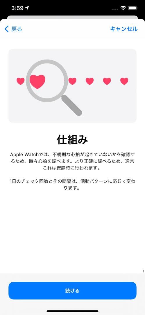 中でもすでに事前に予告されていたように日本ではiPhoneをiOS 14.4、Apple WatchをwatchOS 7.3にすることで新たに「心電図(ECG)」機能と不規則な心拍の通知機能が利用できるようになりました。これらの機能は不整脈に最も多い心房細動(AFib)の兆候を検知するために役立つということです。