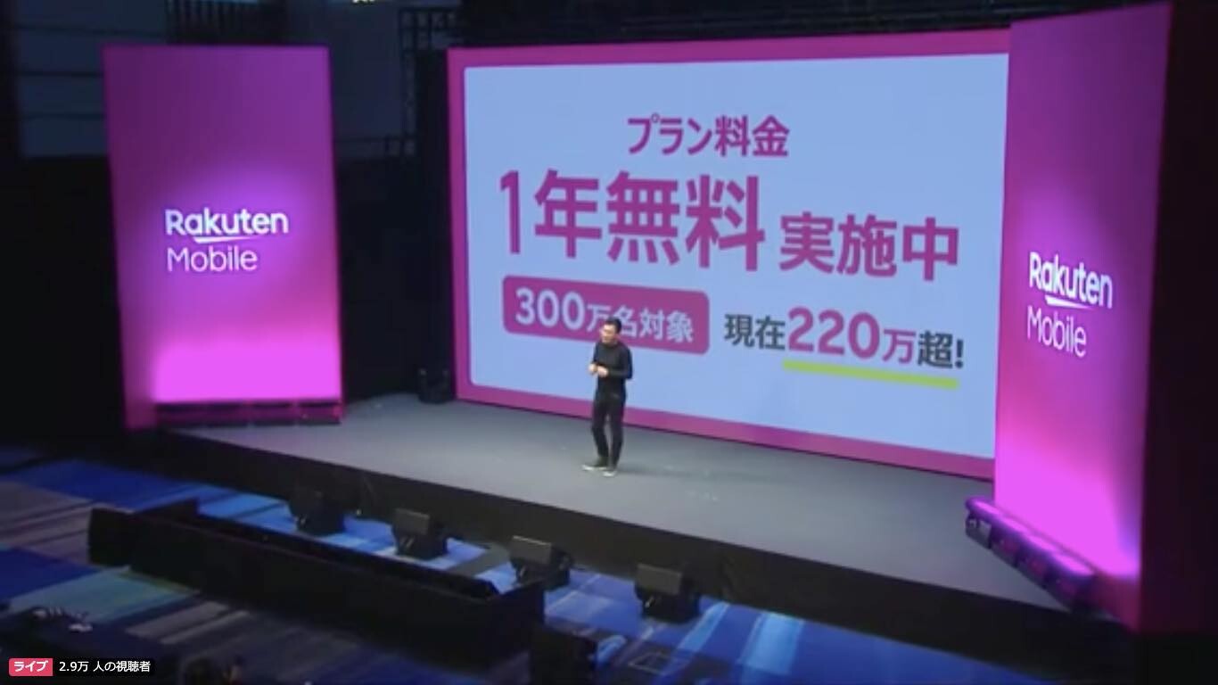 Rakuten UN-LIMIT Vや以前のRakuten UN-LIMIT、そして4月からのRakuten UN-LIMIT VIでは300万人(1人1回線まで)まで1年間は月額2,980円が無料になるキャンペーンを実施しており、以前にも紹介しているように300万人は契約数ではなく申込数でカウントされ、すでに昨年12月末に200万申込を突破したことが発表されているほか、先日のプレスカンファレンスでは220万申込に到達していることが明らかにされました。