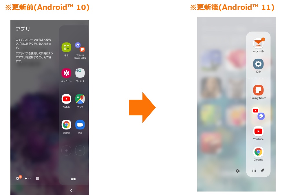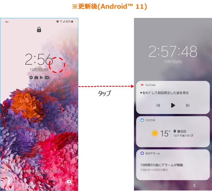 ・OSアップデートにより、お客さまのauスマートフォンはAndroid 11に変更され、画面操作や機能が変更されます。