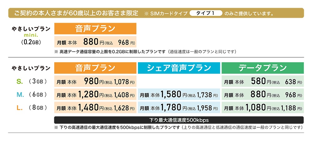 またオプションの050かけ放題や60歳以上のシニア向け料金プラン「やさしいプラン」も値下げされ、やさしいプランは音声プランではmini.が100円値下げの月額880円、月3GBのS.が300円値下げの月額980円、月6GBのM.が300円値下げの月額1,280円、月8GBのL.が500円値下げの月額1,480円となっており、シェア音声プランやデータプランもそれぞれ値下げされています。その他、同社では2021年5月31日(月)まで「みんな春得キャンペーン」も実施しています。