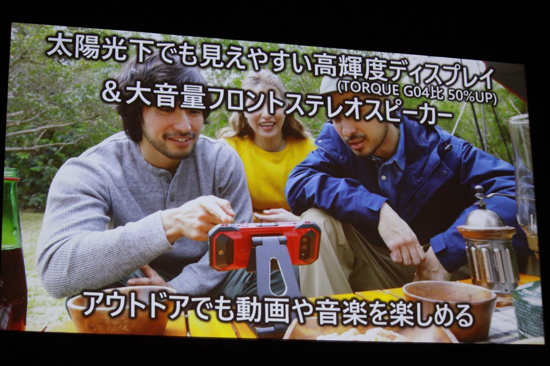 ディスプレイはノッチやパンチホールなどの切り欠きのないアスペクト比9:18の約5.5インチFHD+(1080×2160ドット)IPS液晶と、TORQUE G04の5インチから若干大型化し、さらに初の縦長画面となったほか、太陽光でも見えやすい高輝度で、TORQUE G04と比べると輝度が最大50%向上しています。また大音量フロントステレオスピーカーも搭載。