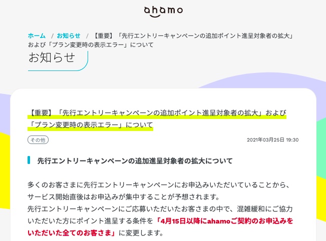 ・【重要】「先行エントリーキャンペーンの追加ポイント進呈対象者の拡大」および「プラン変更時の表示エラー」について