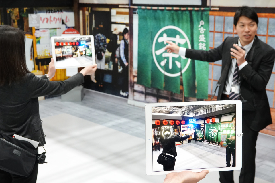 正面のインカメラは顔認証用のセキュリティツールとして利用され、背面のアウトカメラによって映された風景にはCGが合成されてAR映像として表示されます。QRコードはレンズにかざすだけで自動的に読み込まれ、電子マネーの決済手段として便利に活用されています。