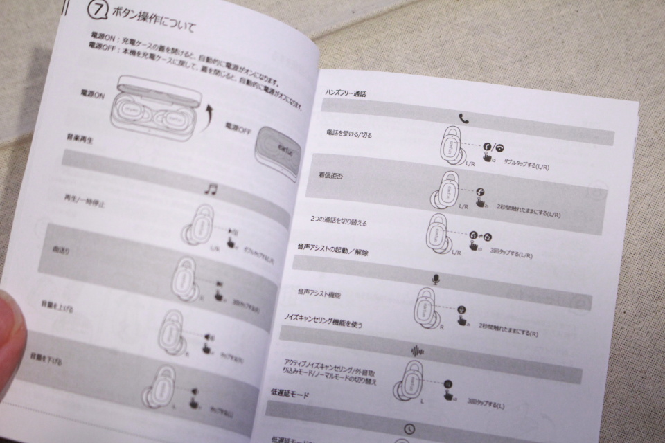 ・L側を3回タップ:アクティブノイズキャンセリング(ANC)→外音取り込みモード→ノーマルモードの順に切り替え