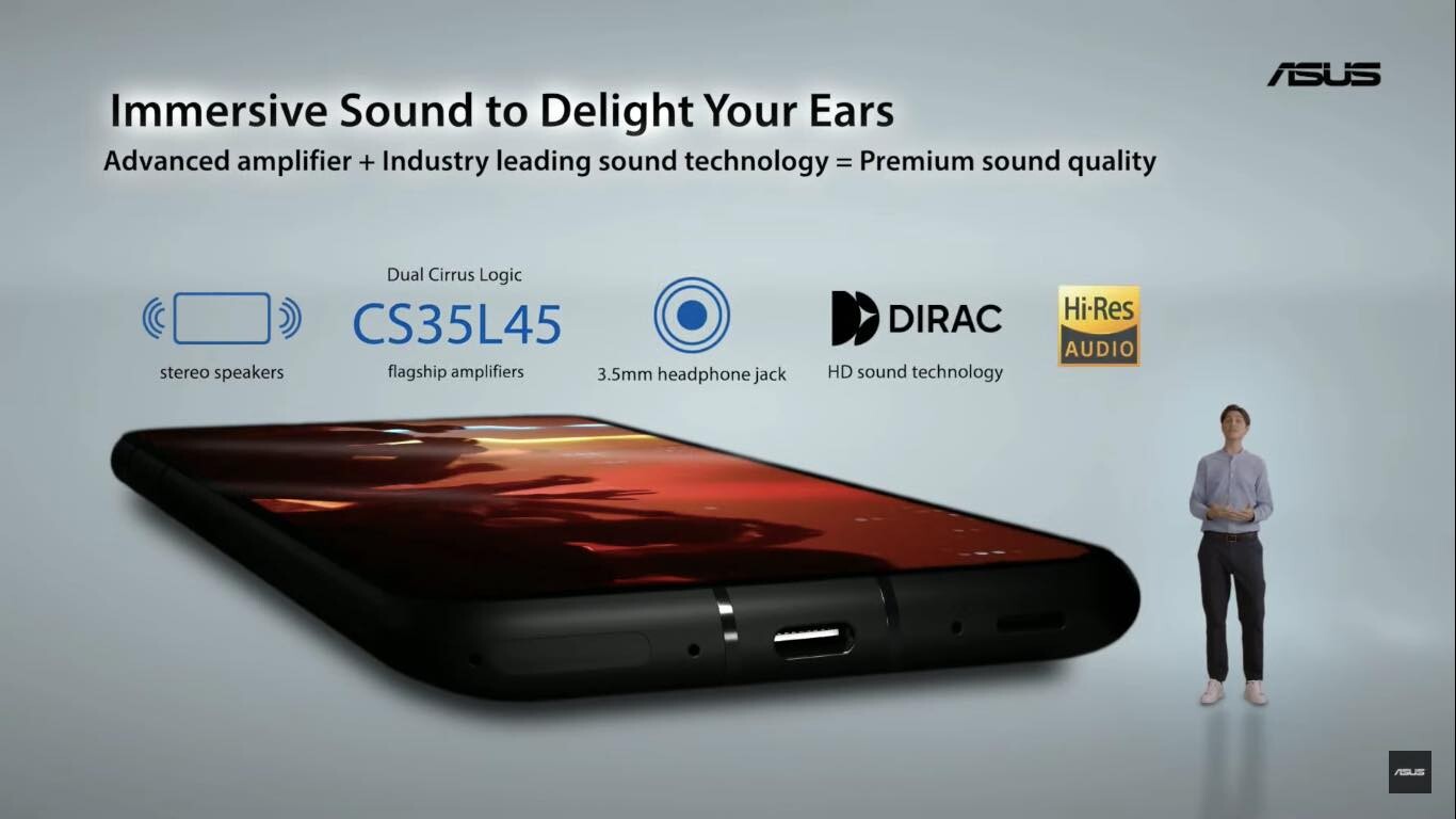 オーディオ面では音響補正技術「Dirac HD Sound」に対応したデュアルマグネットステレオスピーカーを搭載し、スマートアンプはZenfone 8がCirrus Logic製「CS35L45」、Zenfone 8 FlipがGoodix製「TFA9874」で、豊かな低音の効いた歪みの少ない大音量を楽しめるとのこと。またOZO Audio ZoomおよびASUSノイズリダクション技術に対応したマイクを内蔵。