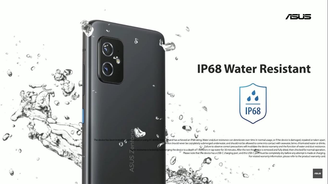 なお、Zenfone 8 Flipは引き続いてノッチやパンチホールといった切り欠きはありません。また違いとしてはZenfone 8は新たに防水・防塵(IP68)に対応しました。RAMはLPDDR5、内蔵ストレージはUFS 3.1を採用し、外部接続・充電端子はUSB Type-C(USB 3.1)となっており、Zenfone 8には3.5mmイヤホンマイク端子が搭載されています。