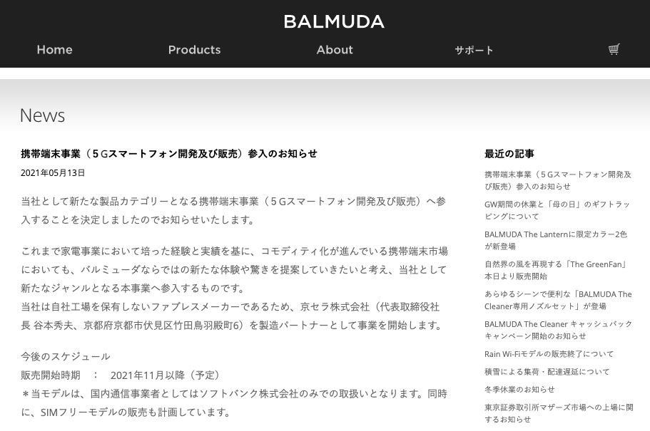 ・バルミューダ | ニュース | 携帯端末事業(5Gスマートフォン開発及び販売)参入のお知らせ