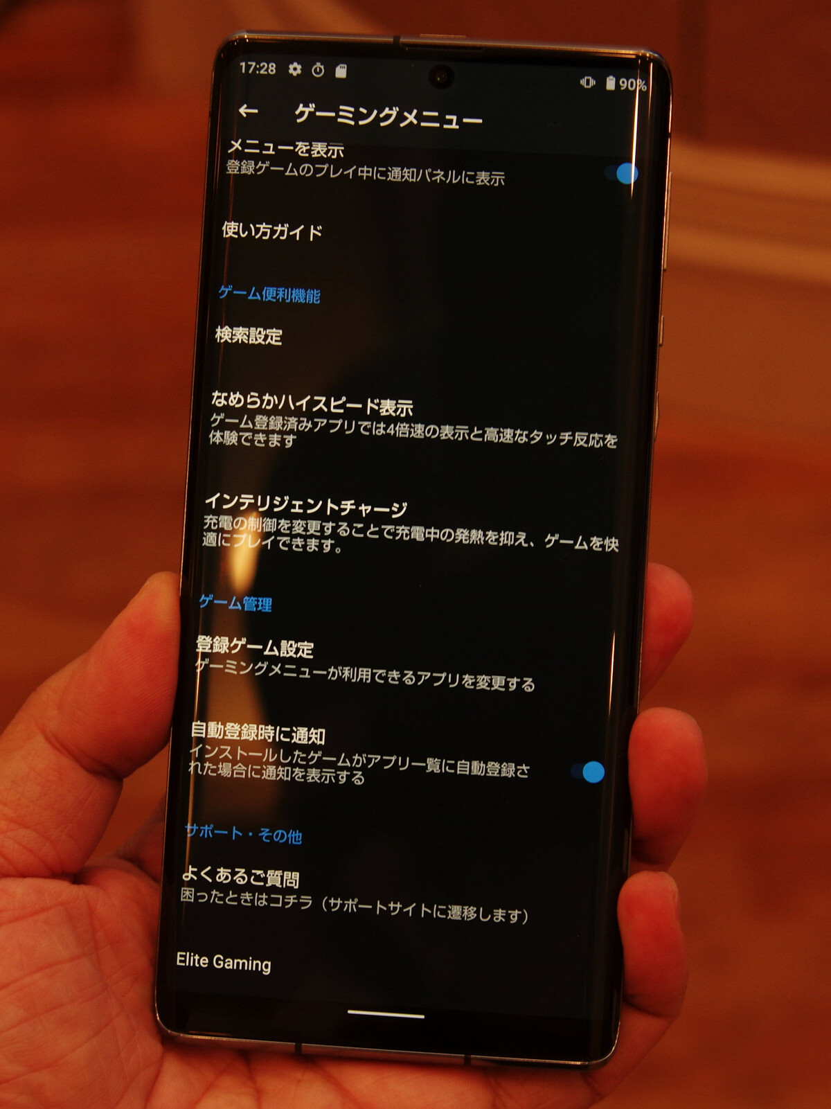 ゲーミング機能では新たに他社製品にも見られる充電器の給電のみの設定「インテリジェントチャージ」も追加された。長時間のゲーム中、充電器からのバッテリー充電をあえて行わないことで、本体の発熱やバッテリーの劣化を防げる。