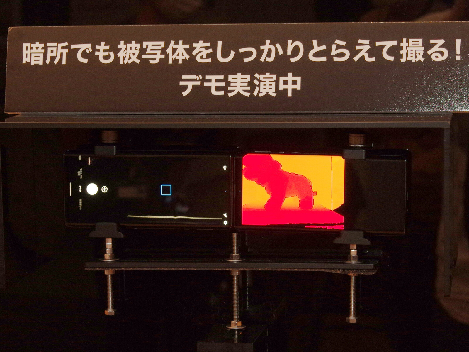 また従来の「AQUOS」シリーズと比べて明らかに向上したのが、大型センサーによる高感度撮影だ。暗室の非常に暗いプラネタリウム内の星も、従来モデルでは撮れなかったものが撮れるデモを実施。また、暗所オートフォーマスもレーザーAFによりしっかり捉えて撮影できる。