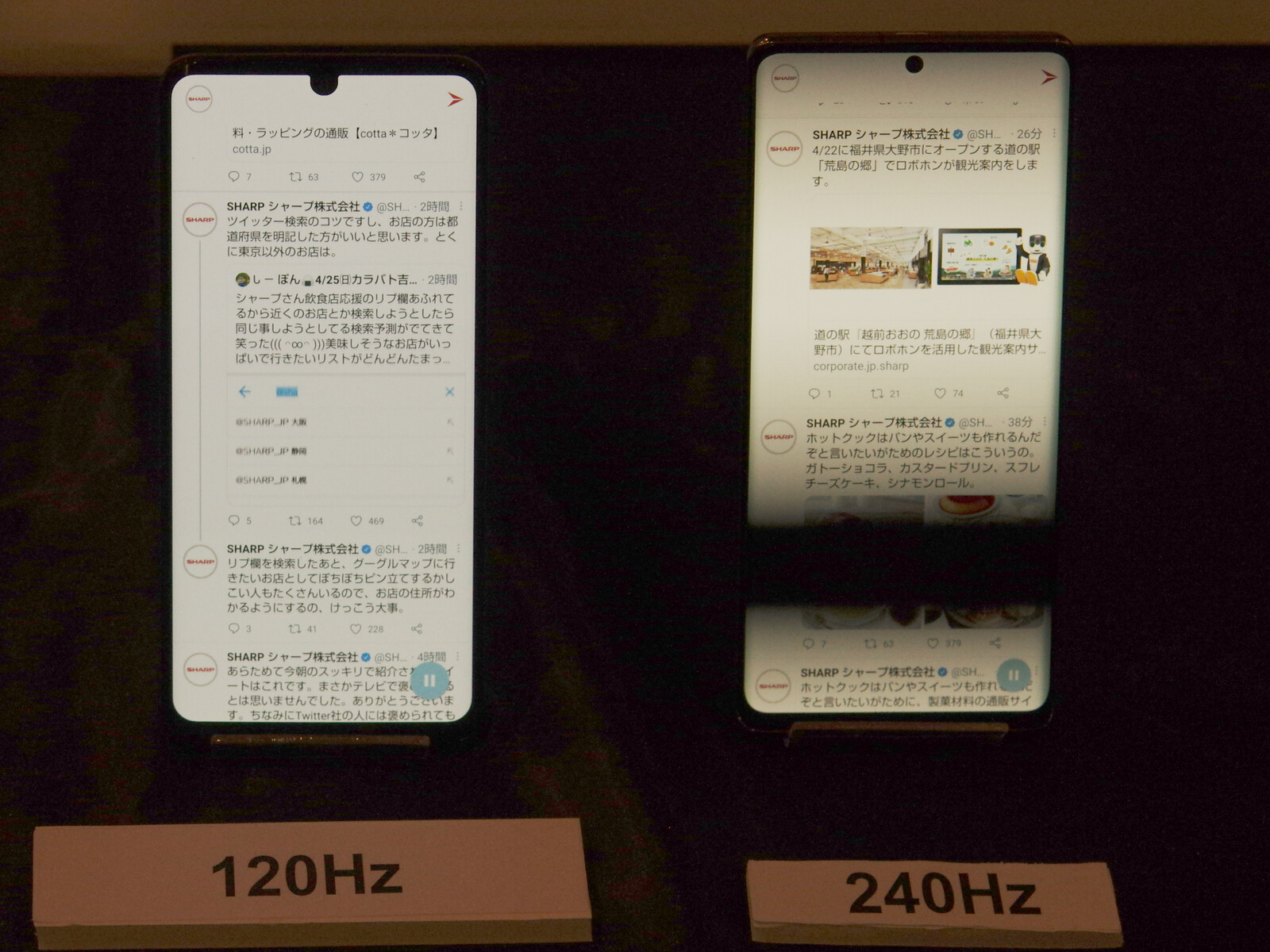 また表示フレームレートは標準で1〜120fpsのアイドリングストップ表示に対応。高い省電力性能と、操作時の滑らかさを両立した。これは従来のIGZO液晶の特徴を引き継ぐもので、画面の制止時は1fpsだが、画面を動かした時のみ最大120fpsで描画する仕組みとなっている。