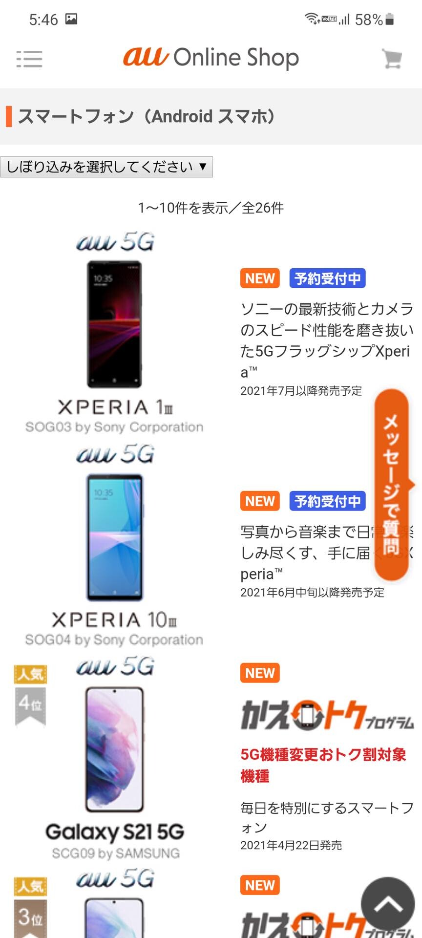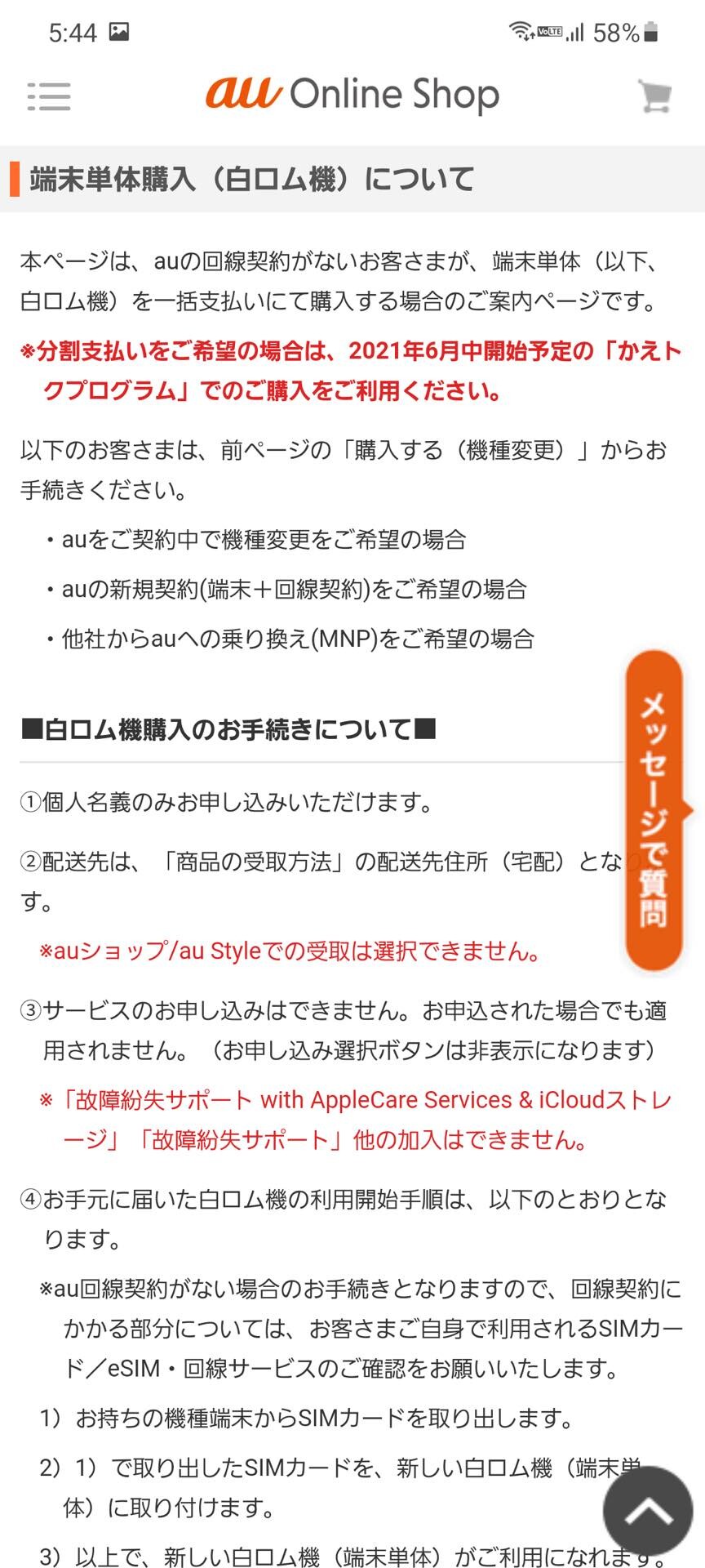 | auオンラインストアにてスマホの端末単体(白ロム)購入が可能に!一括払いならSIMロック解除済みに |