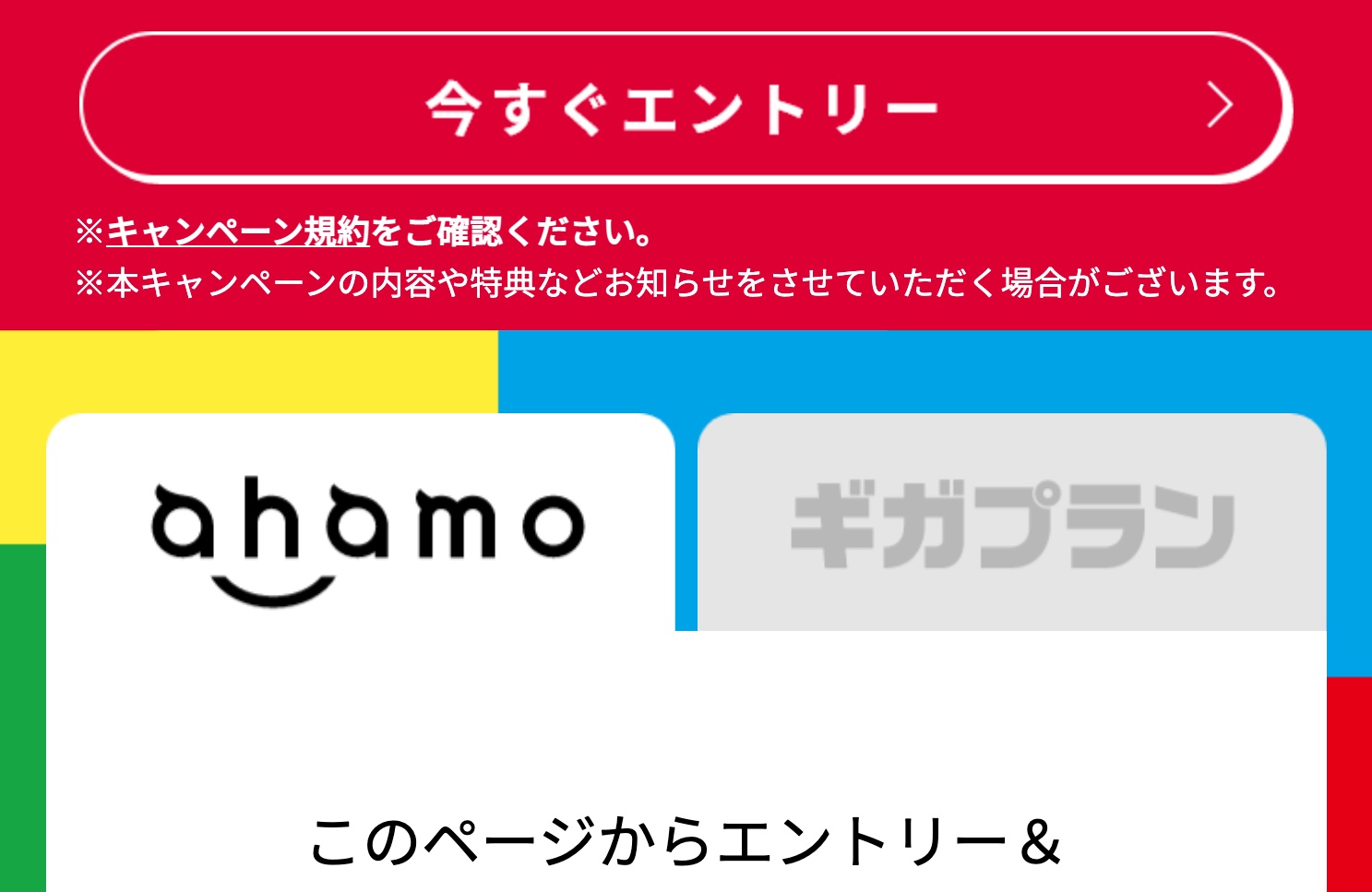 キャンペーンでは上記のキャンペーンWebページにて契約日までにエントリーが必要で、エントリーには「氏名」および「携帯電話番号」、「メールアドレス」を入力の上で行います。なお、ahamoではすでに紹介しているように東北地域限定で最大7,000ポイントプレゼントキャンペーンを実施していますが、このキャンペーンが開始されたことによって6月10日からはMNPでSIMのみ契約の場合はこちらのキャンペーンでの適用に変更されたのでご注意ください。