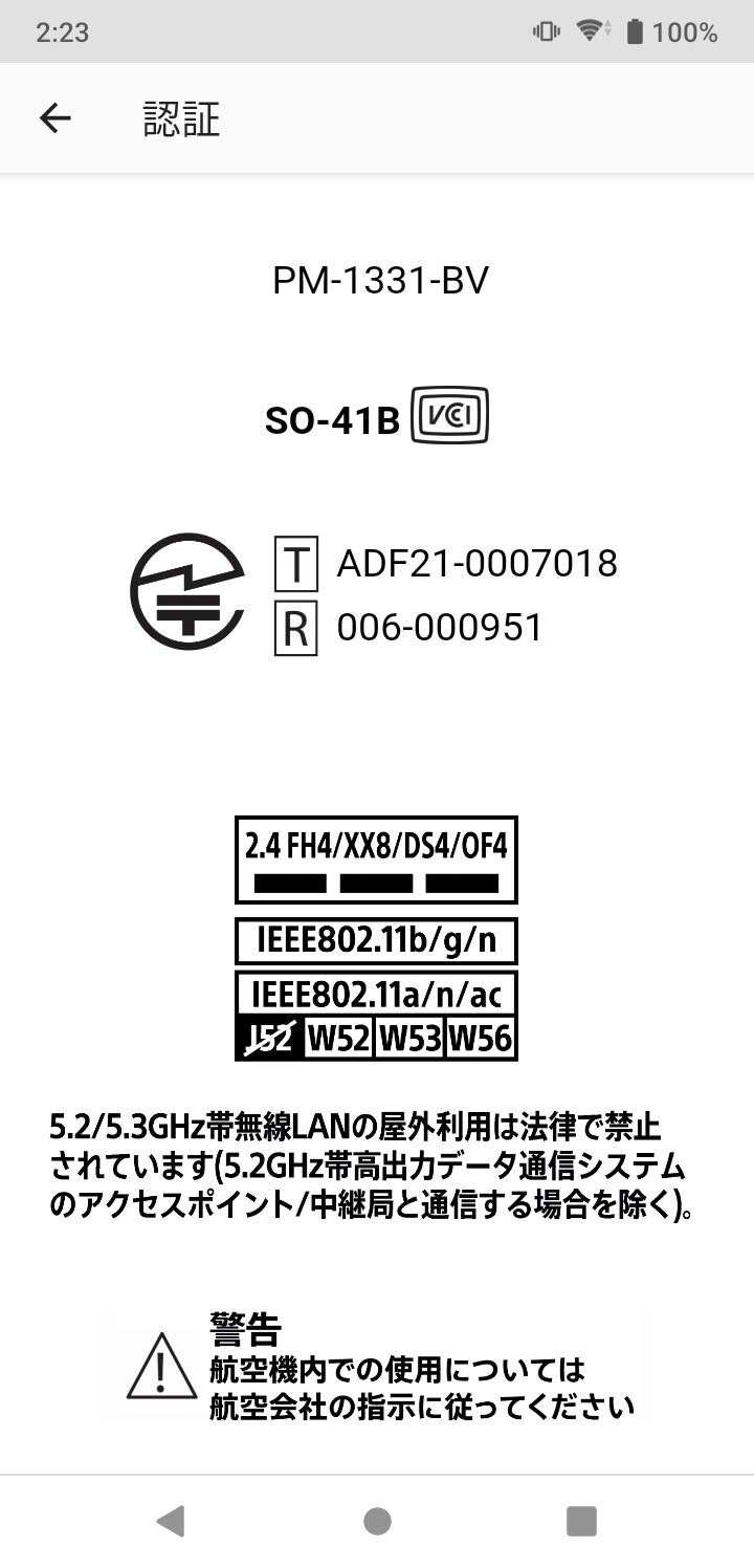 購入時のソフトウェアには不具合があり、すでにソフトウェア更新が配信されているので適用済み。現時点における最新のビルド番号は「60.1.A.177」。技適マークは電波法に基づく(R)が「006-000951」、電気通信事業法に基づく(T)が「ADF21-00007018」、モデル名は「PM-1331-BV」。なお、中国製(Made in China)となっています