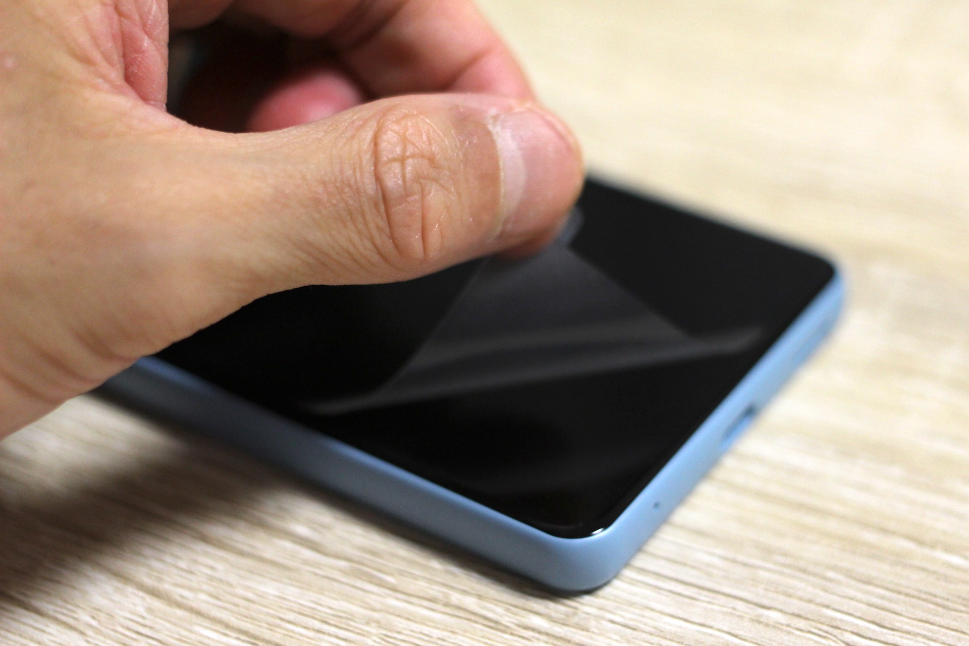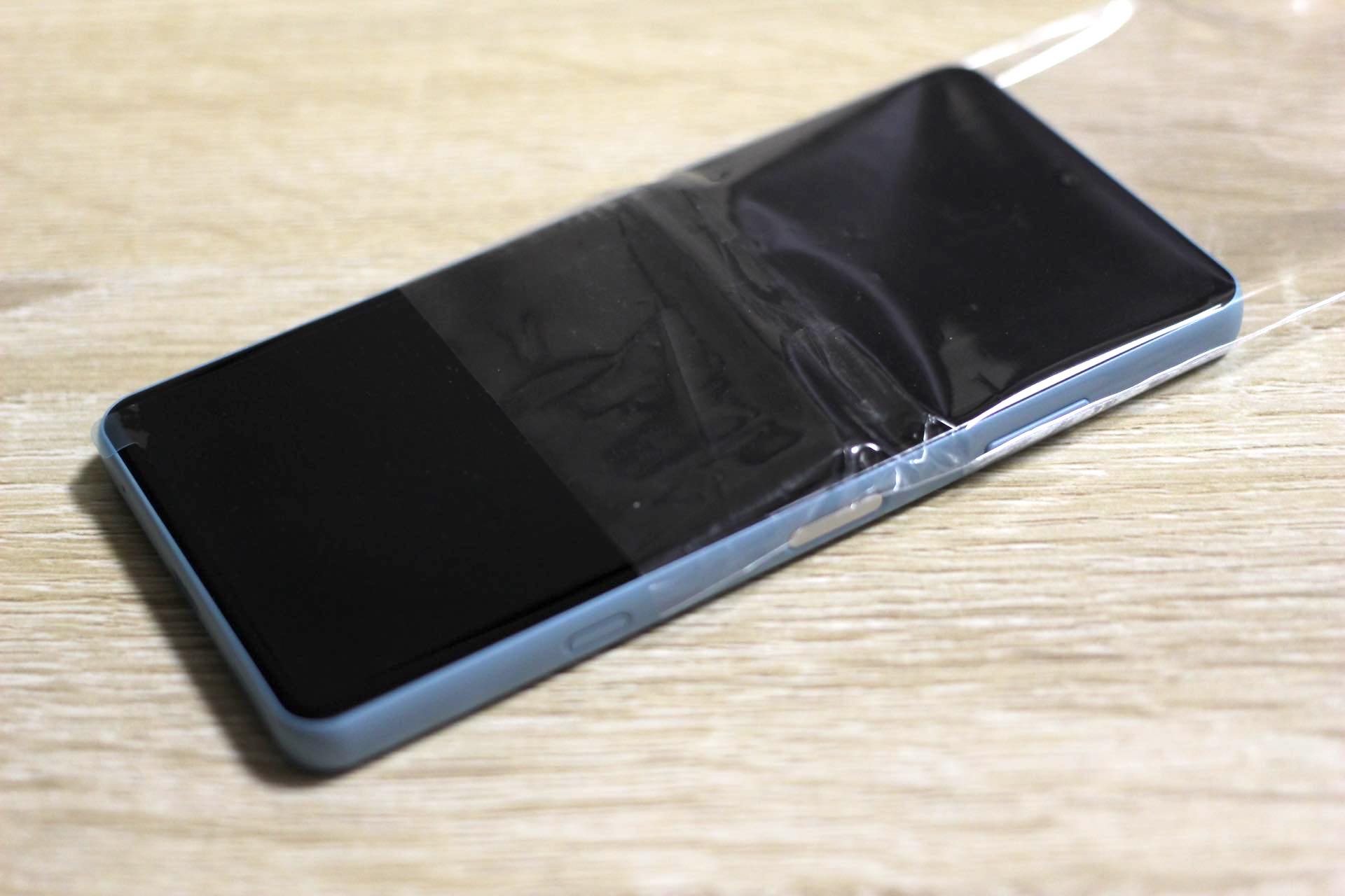 ただし、この保護シートは左下に剥がしやすいように耳が付いているほか、すぐに剥がれてきますし、そもそもあまり透明度は高くないので本当に初期のみ貼っておける簡易的な保護シートとなっており、画面が傷つくのが心配な人はこちらも購入時に合わせてXperia Ace II SO-41B用の保護フィルムを買っておくと良いでしょう。