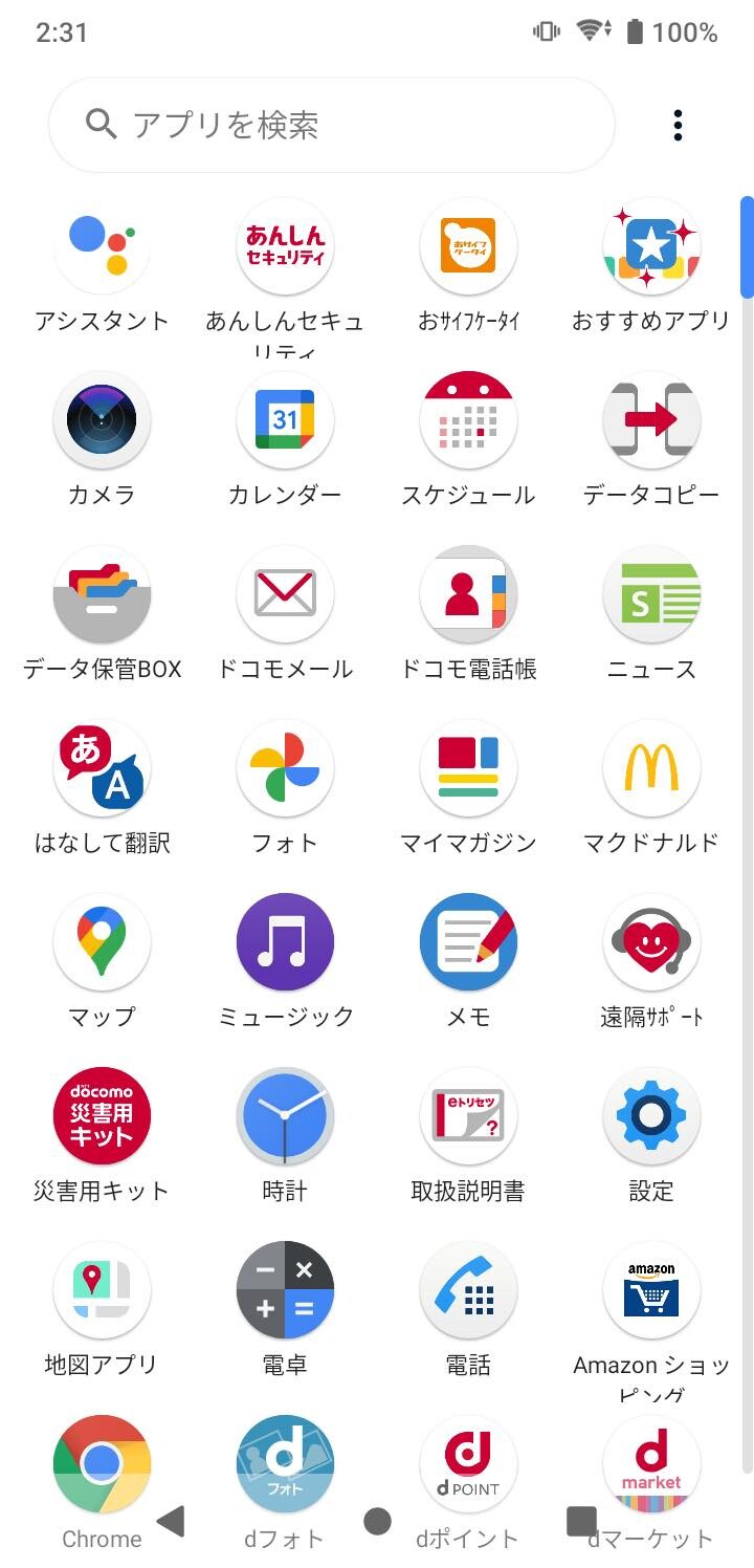 その他のプリインストールされているアプリはプラットフォーマーであるGoogleの「Gmail」や「マップ(Google マップ)」、「YouTube」など、メーカーであるソニーの「ニュース(News Suite)」など、NTTドコモ系の「ドコモメール」や「dメニュー」、「dマーケット」など、サードパーティー製の「Amazonショッピング」や「Facebook」、「LinkedIn」などとなっています。