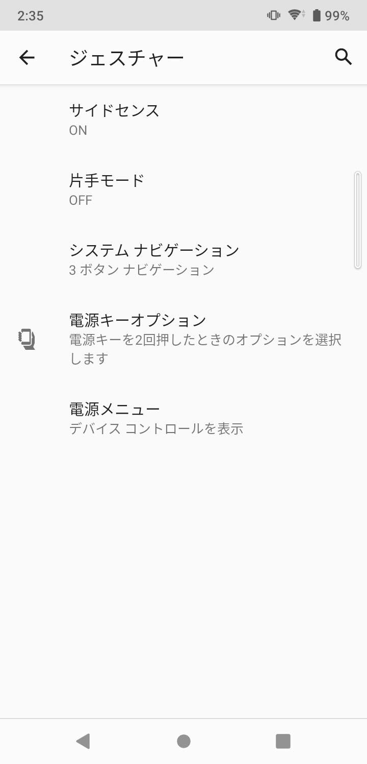 さらに初期状態では操作するとバイブレーションが震えるようになっており、これが鈍く操作していて気持ち悪く感じます。なお、この震える機能は「設定」→「音」からオフにすることは可能です。逆に初期状態ではオフとなっているものの、オンにしたい機能としてはXperiaでは珍しくなった独自機能のひとつである「サイドセンス」です。