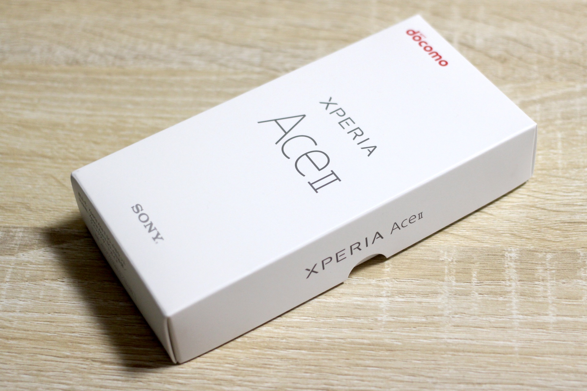 Xperia Ace II SO-41Bの箱。側面にはIMEIなどが記載されているので、起動しなくなったときのためにも箱を保存しておくか、側面のIMEIなどはメモまたは写真で保存しておくと良いでしょう
