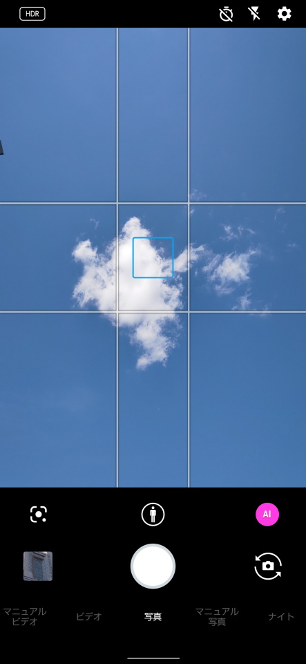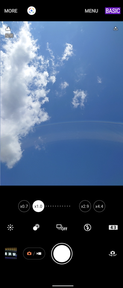 Photography Proでは、BASIC(ベーシックモード)やAUTO(オートモード)、P(プログラムオート)、S(シャッタースピード優先)、M(マニュアル露出)およびMR(登録呼び出し)を切り替えることができる。一般的なスマホのように撮影するモードはBASICとなるため、今回のテスト撮影もすべてBASICで撮影した。