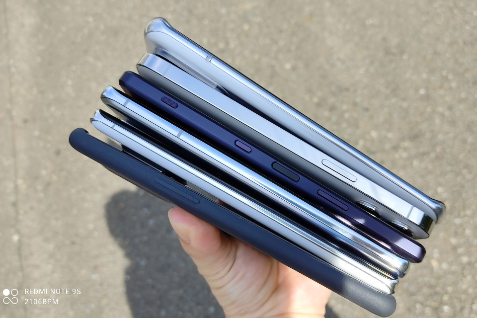 なんと、合計で約1276gと1kgを余裕で超えている。目安としては14インチまでくらいのノートパソコンに近い重量感だ。内蔵バッテリーの大容量化で重量が増しているというのもあるが、機種によっては搭載しているカメラ周りの重量感もあり、デザイン的にも出っ張りがあるのが3年前とは異なる。