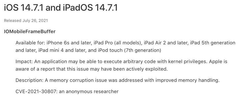 ・iOS 14.7.1 および iPadOS 14.7.1 のセキュリティコンテンツについて - Apple サポート