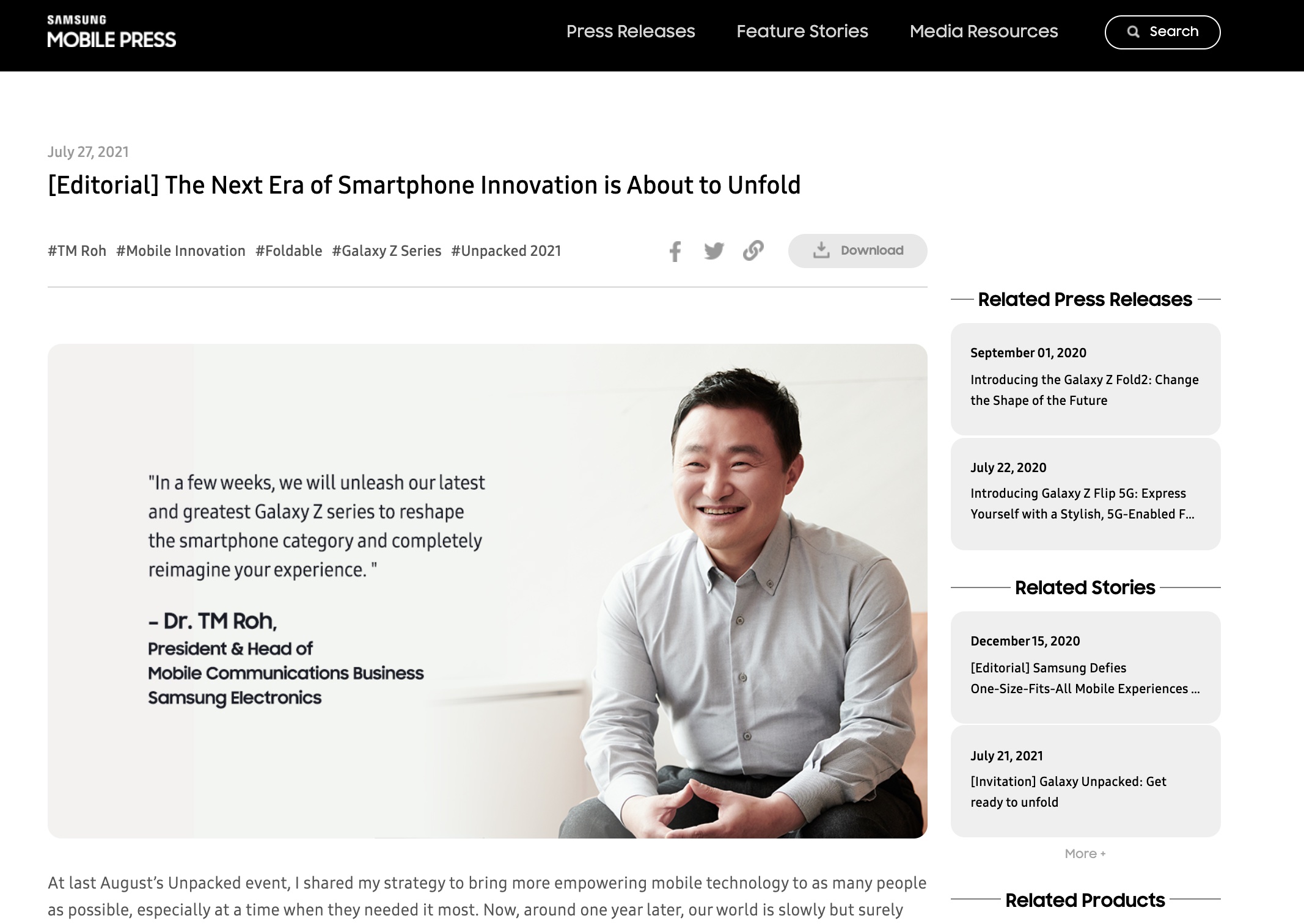 また同社ではフォルダブルスマホの“第2世代”である「Galaxy Z Fold2」と「Galaxy Z Flip」という2つのカテゴリーを改善し続け、画面がより大きく、それを活かした新機能を備えており、その後継製品である第3世代のフォルダブルスマホでは新しいマルチタスク機能と強化された耐久性を提供するとしています。
